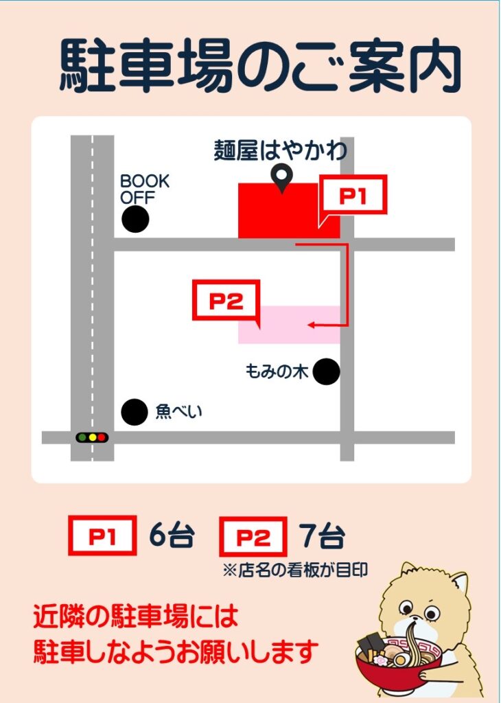 駐車場のご案内|麺屋はやかわ【第2駐車場あり】