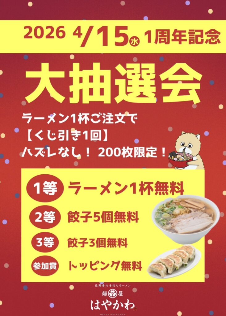 いつも麺屋はやかわをご利用いただきありがとうございます。